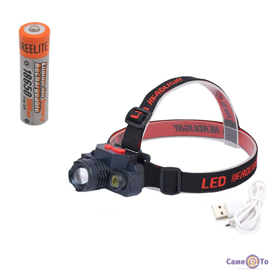 Ліхтар оснащений комбінованою системою освітлення: основний діод XPE та бічні COB-світлодіоди дають яскраве та рівномірне світло з можливістю вибору одного з трьох режимів. Це дозволяє економити заряд акумулятора або використовувати максимальну яскравість за потреби. Корпус виготовлений з легкого та міцного пластику, а регульований ремінець зручно фіксується на голові.