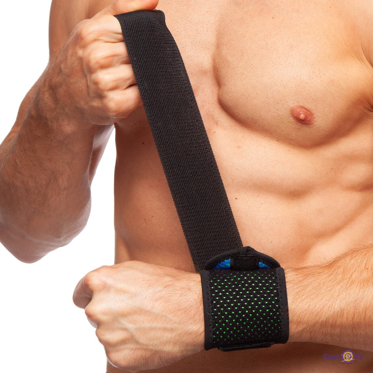 Бандаж для променево-зап'ясткового суглоба не тільки дозволяє запобігти розтягуванню суглобів і м'язів, а також допомагає робити складні рухи-простими. Напульсники для силових тренувань здатні покращувати показники в тренуваннях, а саме під час силових вправ, а також запобігати серйозним травмам. Напульсники для силових тренувань виготовлені із якісного матеріалу-неопрену. У ньому руки не пітніють і не виникає алергії або роздратування. Сам бандаж має зручну липучку, за допомогою якої його можна одягати на руку. Виготовлений бандаж у чорному кольорі. У комплекті йде один напульсник, який можна одягати як на праву, так і на ліву руку.