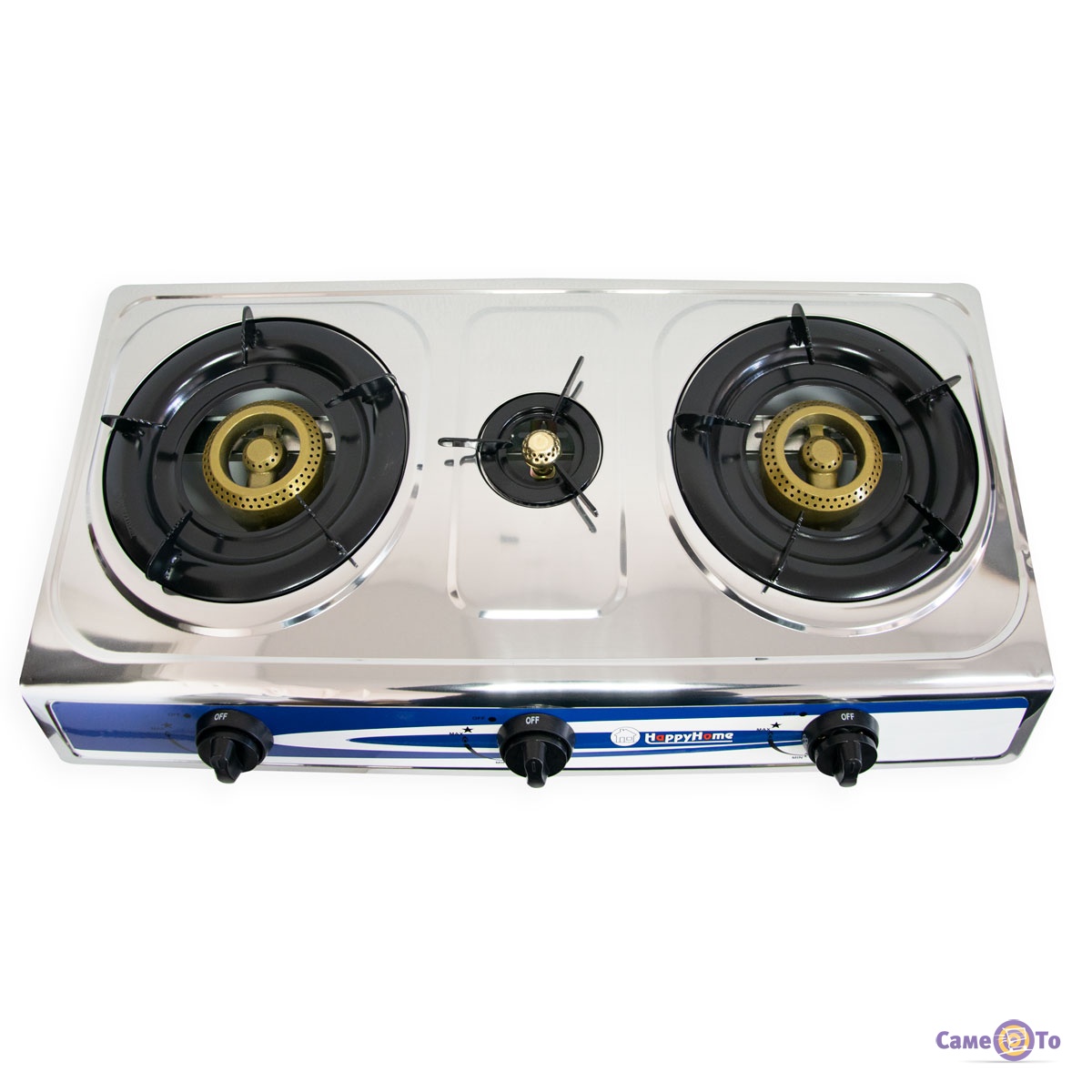 Настільна газова плита на три конфорки HappyHome - це чудовий вибір для тих, хто шукає зручну та функціональну газову варильну поверхню. Ця газова плита з легкістю впишеться в будь-яку кухню, займаючи мінімальний простір на стільниці.