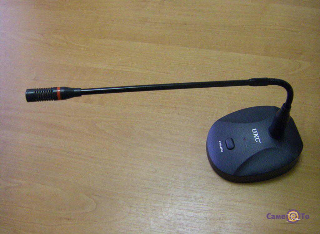 Сьогодні складно уявити діловий масовий захід без якісного технічного оснащення. Мікрофон UKC pro-2800 стане відмінною підмогою для спікера на лекції, семінарі, конференції та мітингу. Очевидна перевага даного пристрою перед звичайним мікрофоном в тому, що його не потрібно тримати в руках. Встановивши UKC pro-2800 на столі або трибуні, можна забути про його існування і цілком віддатися полум'яній промові або науковій доповідді. Його компактні розміри дозволять вільно розміщувати на робочій поверхні папір, папки або наочні матеріали і вільно переміщати їх, не відволікаючись від основного заняття на переустановку великого мікрофона з боку в бік. Технічний нюанс мікрофона для конференції полягає в принципі його роботи. Тиск звукових хвиль від повітря, води або твердої речовини впливають на його тонку мембрану. Вона в свою чергу викликає електричні коливання. Мікрофоном легко користуватися, на видному місці розташована кнопка включення і виключення, якою без особливих зусиль може управляти виступаючий. А спеціальний вітрозахист позбавить звук від зайвих шумів і забезпечить його якісну подачу слухачам.