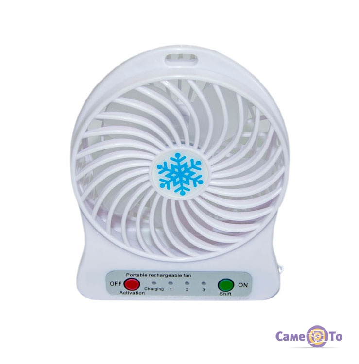Mini Fan можна носити з собою, тому що він відрізняється компактними габаритами і зовсім невеликою вагою. Більш того, використовувати вентилятор можна не тільки в офісі, але і в парку, на природі, під час навчання в університеті і т.д. Пристрій працює завдяки акумуляторній батареї, тому він буде надавати освіжаючий ефект протягом довгого часу без додаткової підзарядки. А ще його можна заряджати за допомогою USB-кабелю. Варто також відзначити той факт, що вентилятор працює абсолютно безшумно, він не буде заважати Вашому звичному трудовому процесу, відволікаючи неприємними гучними звуками. Виріб має кілька різних режимів, а якщо точніше - швидкостей обдуву. А ще він оснащений лампою, що допоможе освітити робочий стіл або клавіатуру ноутбука.