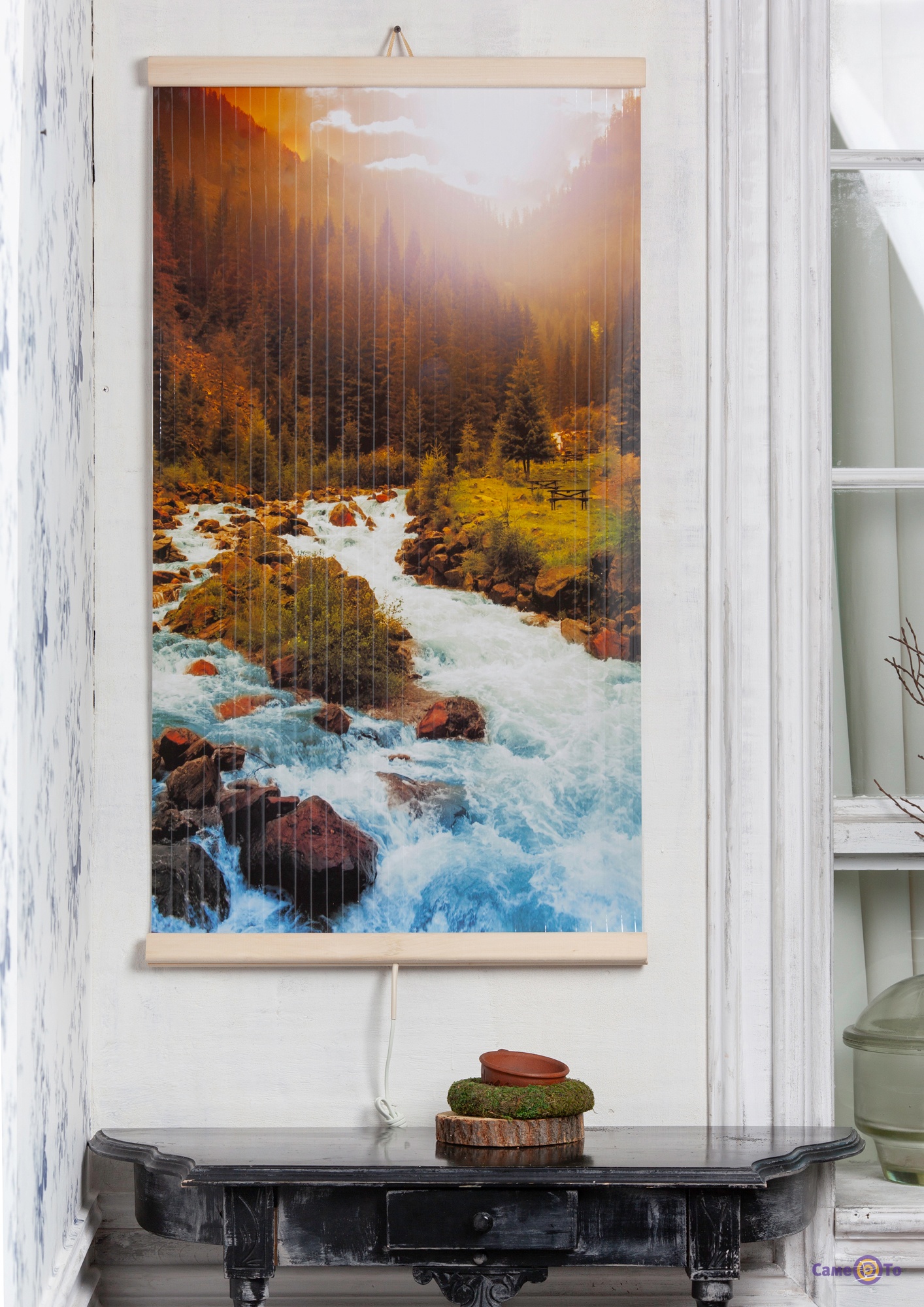 Даний електрообігрівач фактичо являэ собою ПВХ лист з будованим в нього нагрівальним елементом у вигляді дроту. Обігрівач відмінно декорує приміщення. Інфрачервоне випромінювання від такої «картини» чудово зігріє. Така «картина обігрівач» легко зберігається, вона не займає багато місця. Ви можете скрутити цей електрообігрівач в рулон і перемістити куди завгодно. Він легкий і компактний. Термодатчик захистить настінний обігрівач від перегріву. Відмінно підходить для обігріву житлових і нежитлових приміщень.