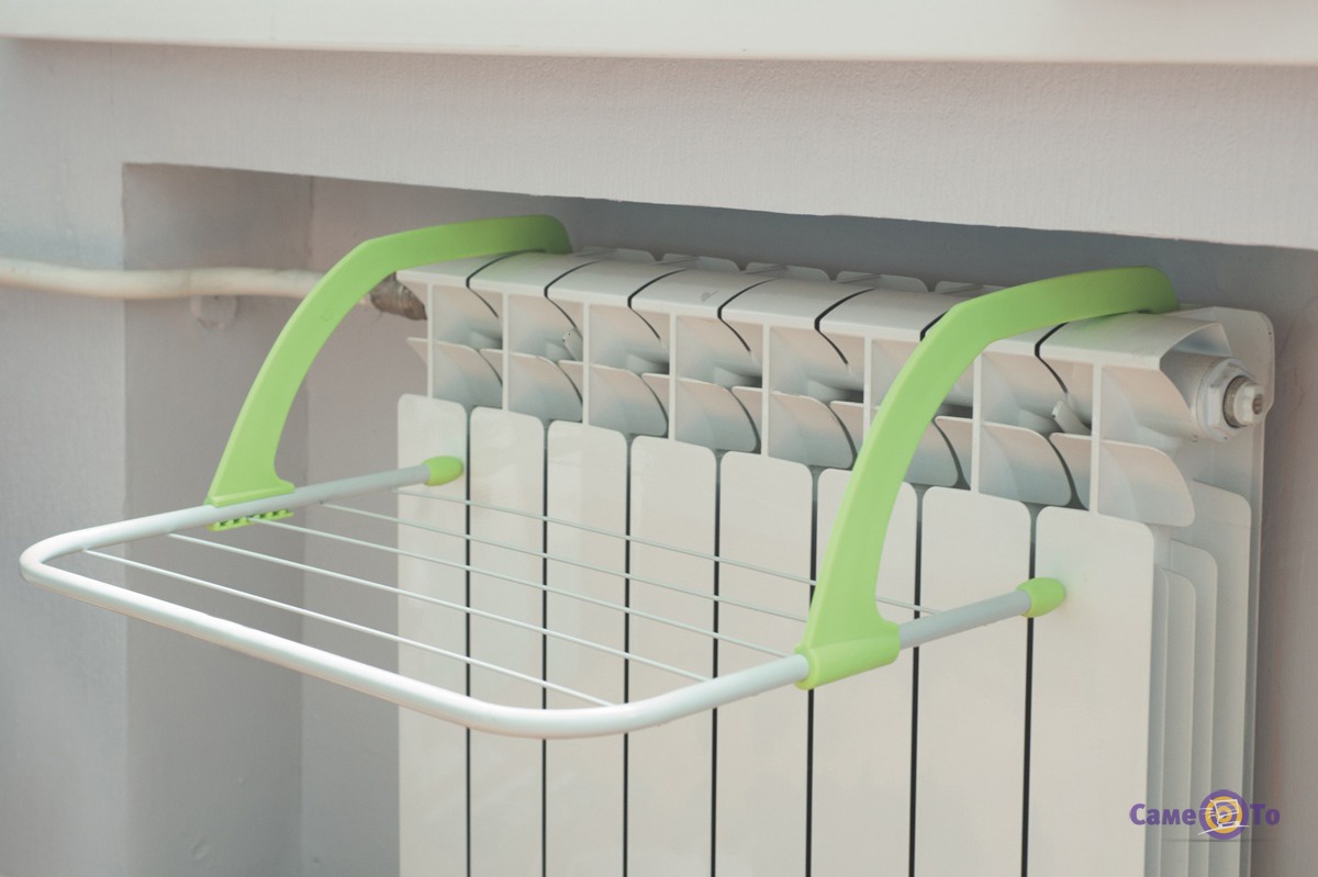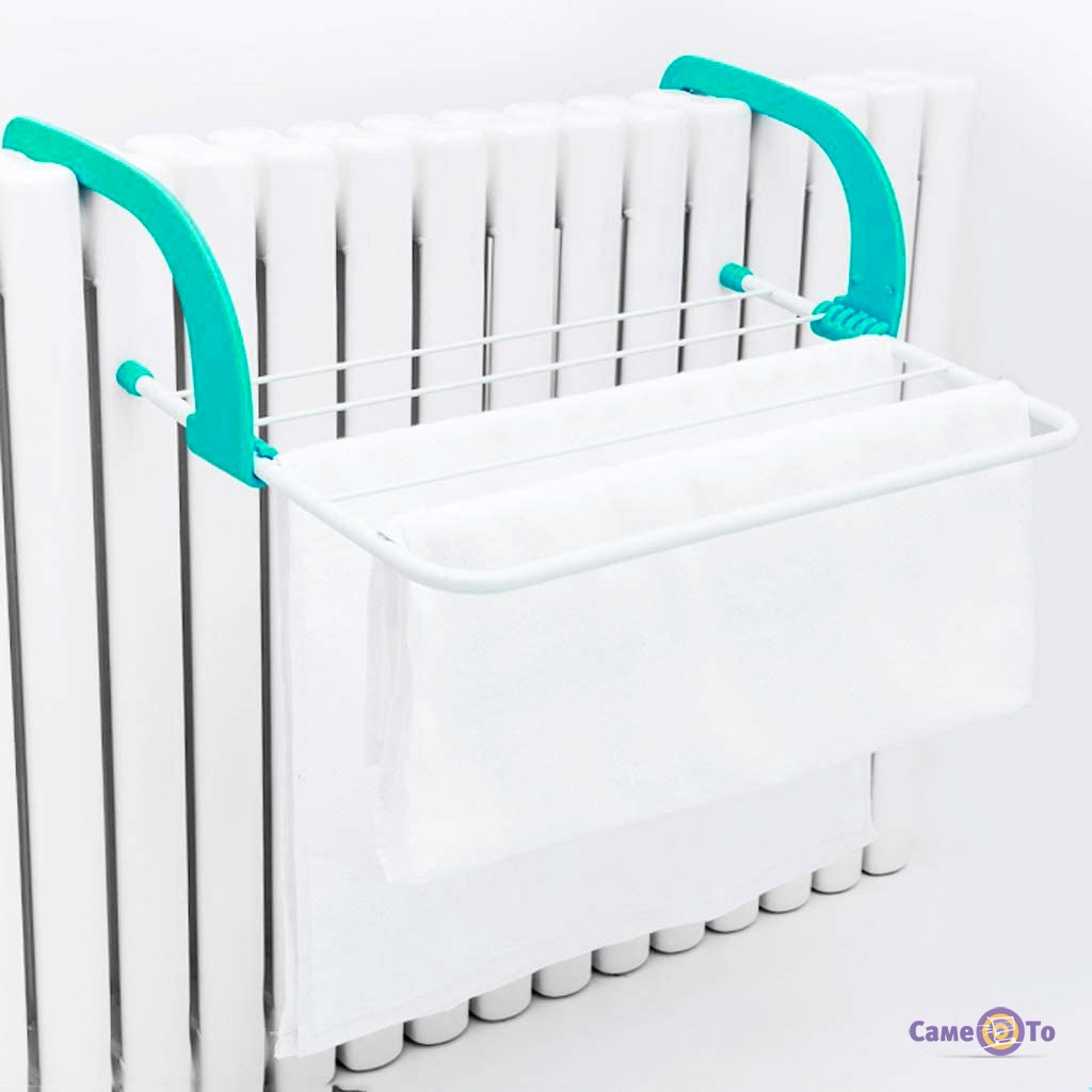 Универсальная маленькая и удобная навесная сушилка для белья в вашей уютной квартире. Обеспечивает безопасное использование, крепится как на батареи, так и на других местах вашего дома (где вам удобно).