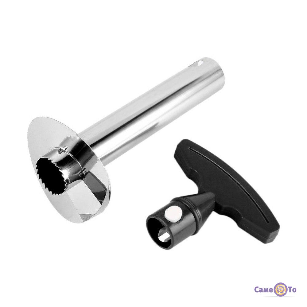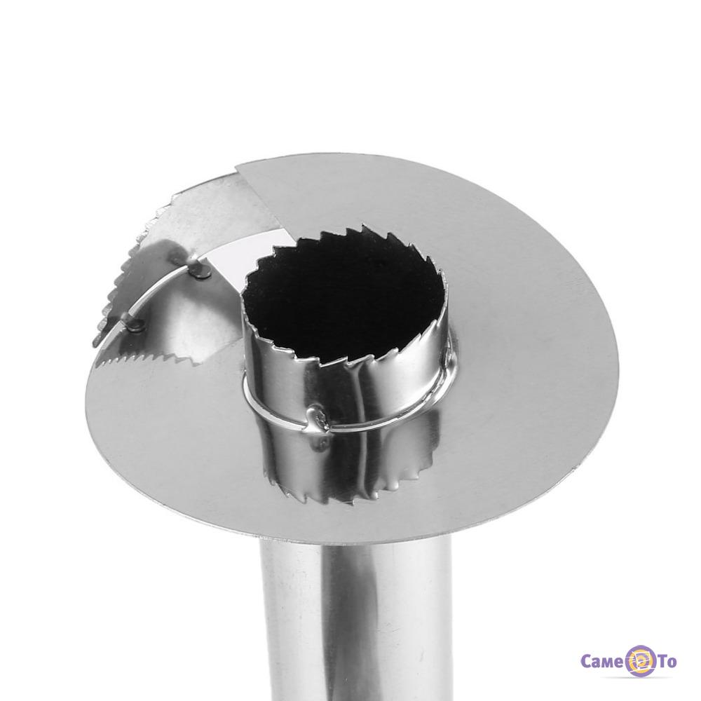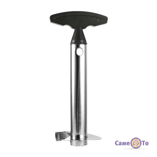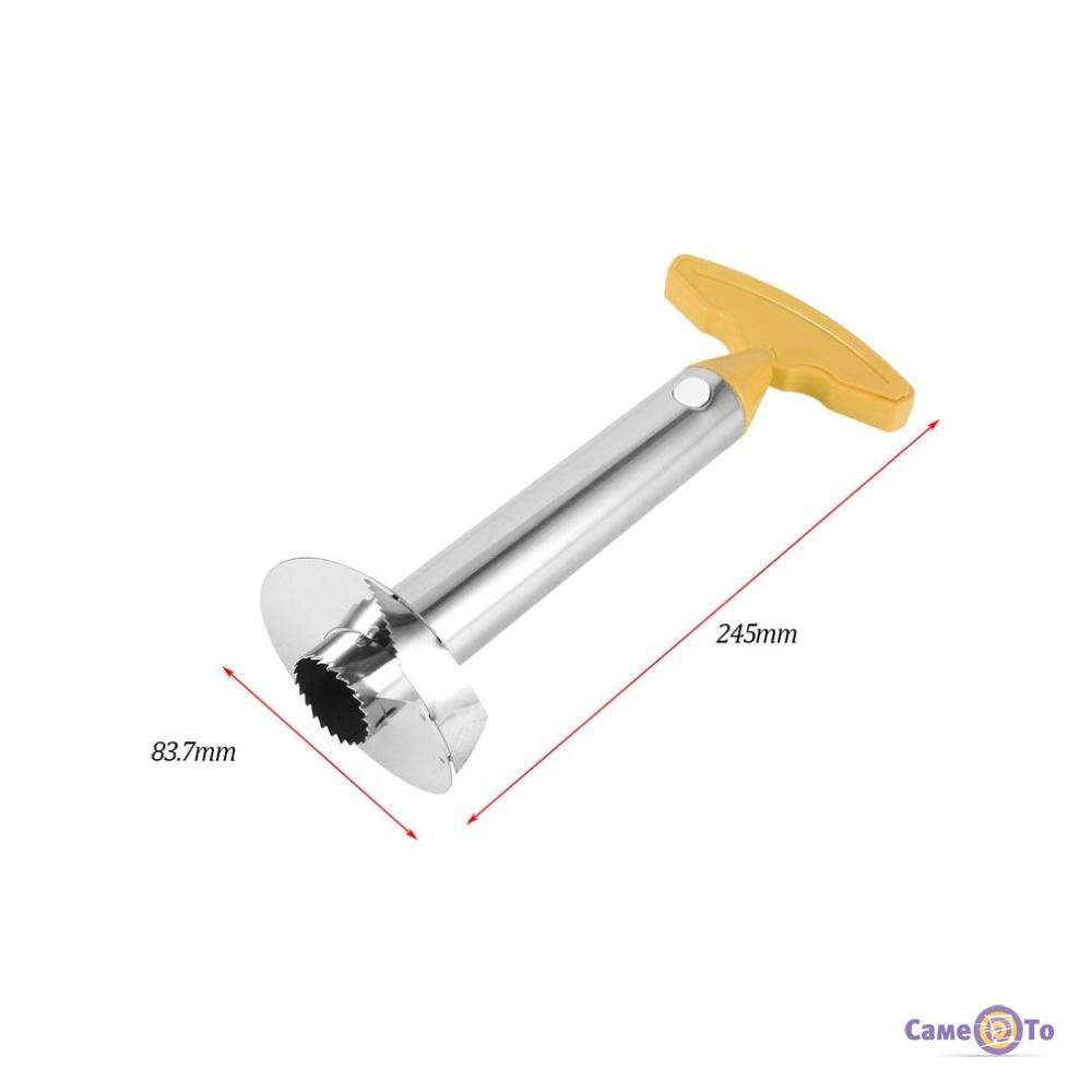 Pineapple Slicer має циліндричну форму. На нижній частині корпусу знаходяться гострі леза круглої форми, виконані з пластику. У верхній частині розташована зручна пластикова ручка з ергономічним дизайном, завдяки якій нарізати плід можна як правою рукою, так і лівою однаково зручно. Сам корпус всередині порожній – при укрученні виробу в м'якоть в ньому залишається серцевина плоду.