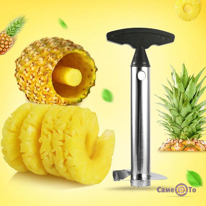 Слайсер для ананаса діє за принципом викрутки. Він вкручується в середину плода, поступово відокремлюючи рівними кільцями м'якоть від шкірки і залишаючи тверду серцевину всередині. Одним поворотом виробу відділяється одне кільце м'якоті, провертаючи ніж далі, ви нарізуєте більше кілець. Оболонка плоду залишається абсолютно неушкодженою і може використовуватися для сервірування столу в якості ємності для подачі різних страв: