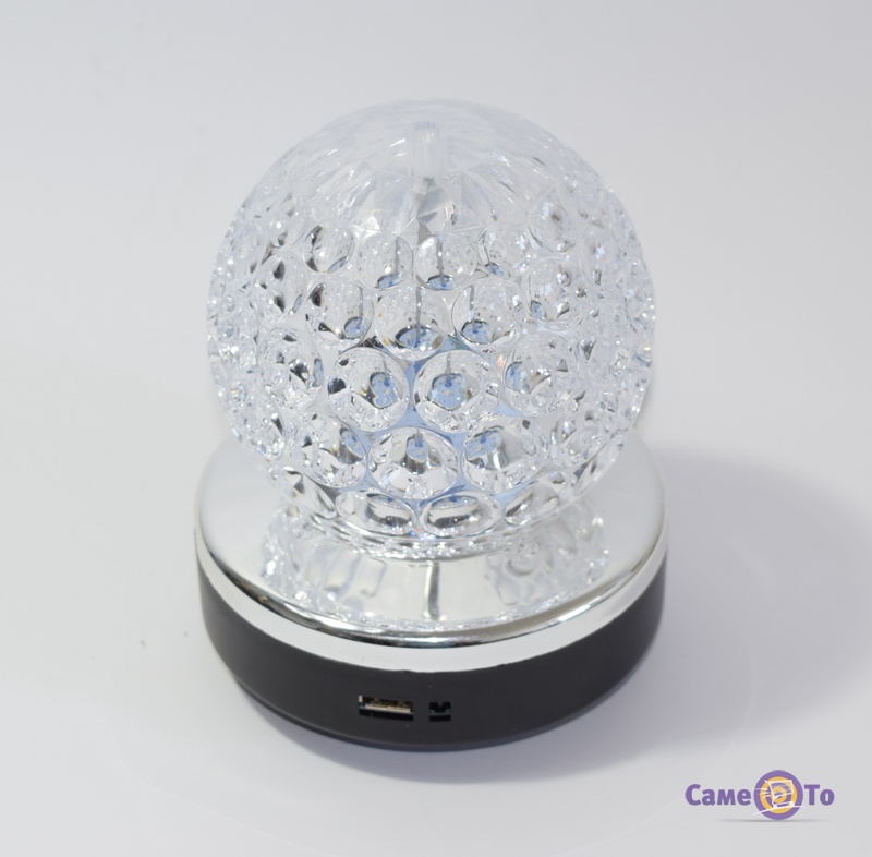 Изделие напоминает музыкальный шарик, излучает три удачно сочетающихся между собой цвета – синий, красный и зеленый, вращается и сияет. Установив такой детский ночник в комнате своего ребенка, Вы останетесь довольны и подарите ему сказку. Мерцающее свечение подойдет под любой интерьер, наполнит дом праздничной атмосферой.