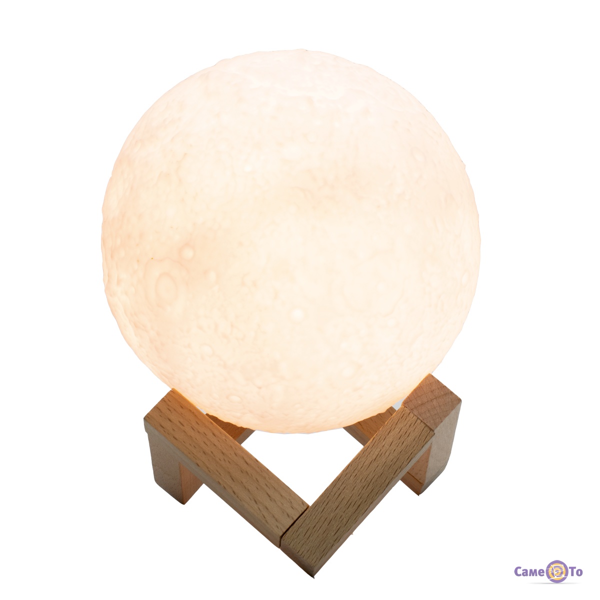 Оригінальність нічного світильника полягає в імітації поверхні місяця і його кратерів. Місяць Moon lamp забезпечений сенсорною системою управління, яка дозволяє легким дотиком руки задавати необхідний колір і яскравість випромінюваного світла до 120 люмен.