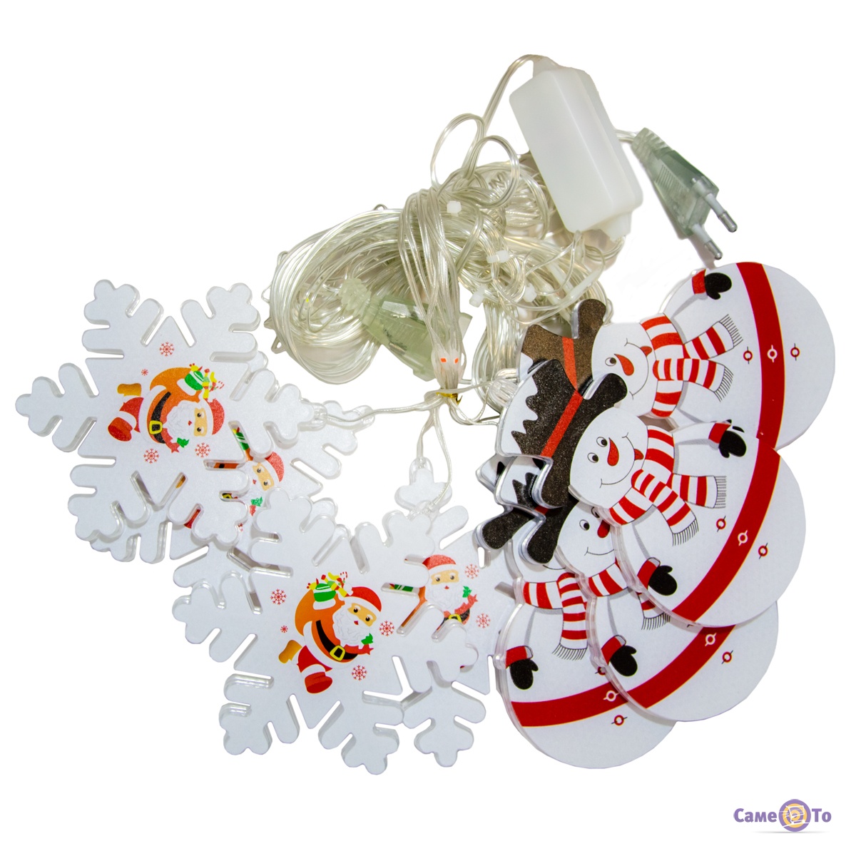 Новорічна гірлянда бахрома Xmas "Фігурки 3D сніговика та сніжинки" Теплий білий 3.2 м