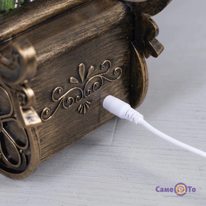 Нічник виконаний у вигляді чарівної карети Санта Клауса, що надає йому особливого шарму. Усередині нічника знаходиться снігова куля, наповнена м'яким світлом і завдяки невагомим сніжинкам, створює дивовижний ефект снігу. Це чудовий додаток до новорічної атмосфери у вашому будинку.