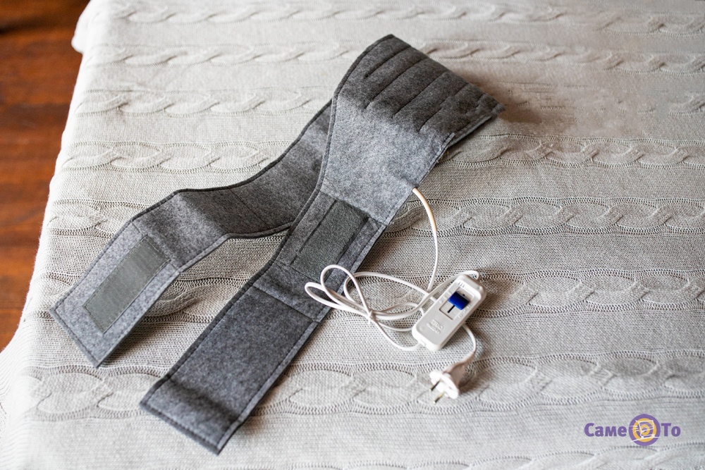 Грілка для пояса виготовлена з натуральної повсті. Вона складається з двох полотен (внутрішнього і зовнішнього), всередині яких знаходиться нагрівальний елемент, виготовлений з вуглецевого волокна. Вуглецевий провід має досить високу еластичність, тому не ламається при згинах виробу. Надійна ізоляція робить пристрій абсолютно безпечним для використання. Розмір виробу 150х20 см. Він обертається навколо талії і фіксується за допомогою застібок-липучок.