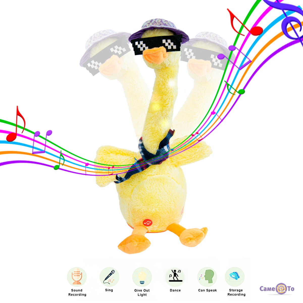 Організувати дозвілля дитини з користю, урізноманітнити ігрову діяльність, розвивати та навчати з ранніх років – важке завдання для сучасних батьків, але цілком вирішуване. Інтерактивні іграшки на сьогодні є улюбленцями для мам та їх дітей, а повторюшка-качка – лідер серед розвиваючих іграшок-тварин. Дитяча музична іграшка качка з чорними окулярами вміє співати та танцювати, повторює слова та речення за дитиною. У її репертуарі 120 пісень, які зроблять веселою та приємною будь-яку гру.