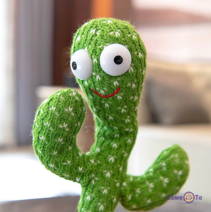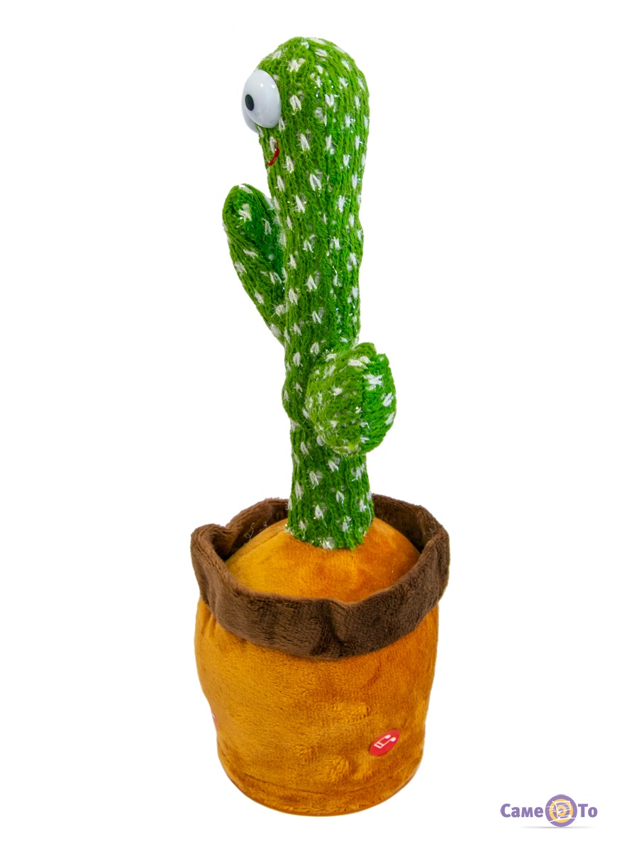 Така музична іграшка не лише виділяється гарним зовнішнім виглядом, але й виготовлена з приємного на дотик якісного плюшу. Завдяки цьому та своїм унікальним функціям співаючий кактус викликає захоплення не тільки у дітей, а й у дорослих. Кактус повторюшка може заспівати вам різні композиції, їх аж 120 у його репертуарі, а ще він стане чудовою підспівкою для вас, повторюючи ваші фрази. Іграшка кактус спочатку запише ваші слова, а потім відтворюватиме їх зміненим голосом, пританцьовуючи і світячись при цьому.