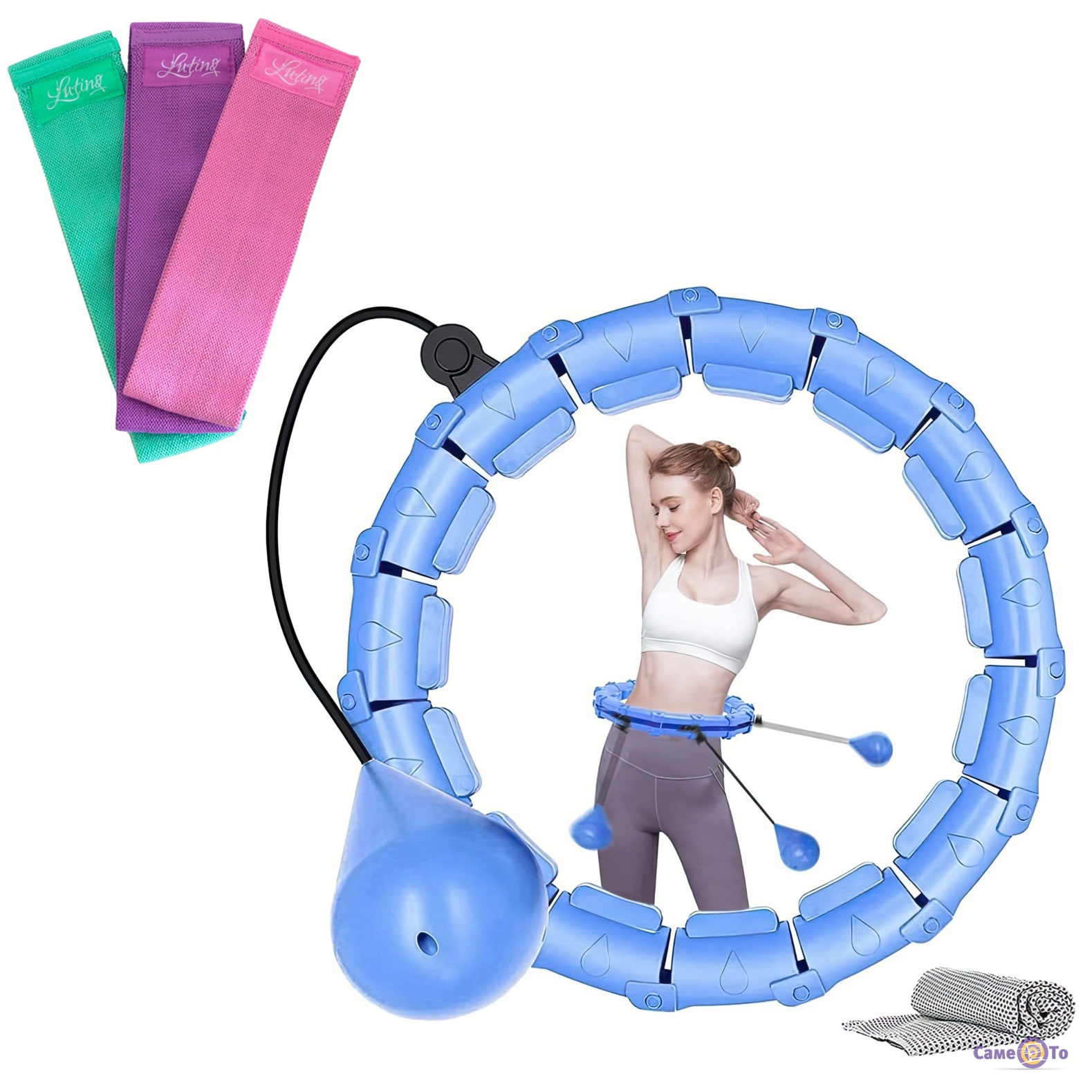 Комплект для ефективних тренувань: обруч для схуднення Hoola Hoop Massager Синій та гумки для фітнесу Luting 3 шт.