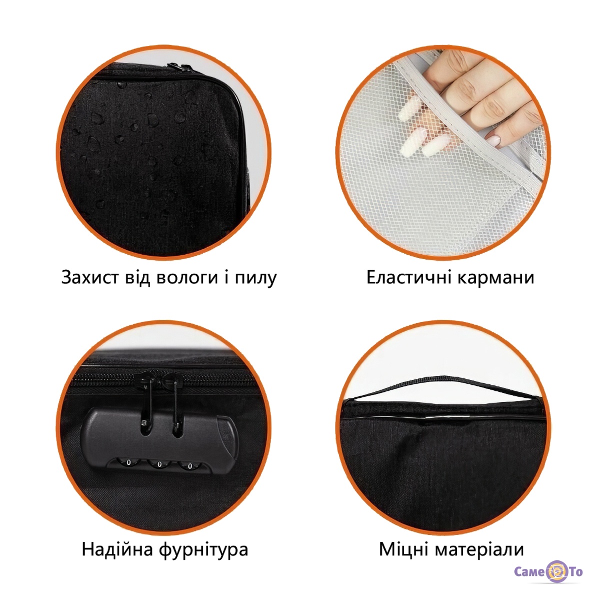 Органайзер виконаний з високоякісного матеріалу, який гарантує довговічність і надійність використання. Усередині передбачені зручні відділення і кишені для зберігання документів, ноутбука, мобільного телефону, ручок та інших дрібниць. Завдяки продуманій організації простору, всі необхідні речі будуть завжди під рукою і в повному порядку.