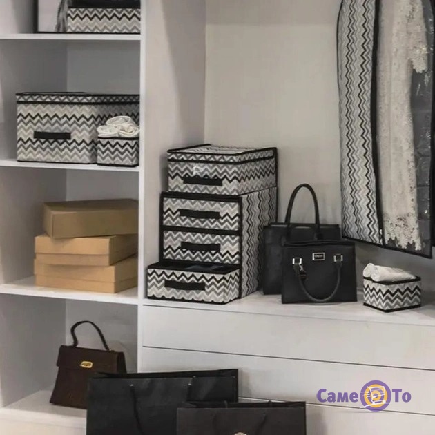 Этот стильный черно-белый органайзер размером 30x30x36 см идеально подходит для хранения различных вещей, будь то белье, одежда или аксессуары. С его помощью вы сможете легко и эффективно структурировать свои вещи, освободив место и создав уютный порядок.