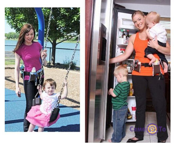 Во-первых, изделие имеет лаконичный фасон и смотрится как настоящий пояс. Во-вторых, данный аксессуар поделен на разные карманы, которые можно использовать для транспортировки и хранения самых необходимых вещей для малыша – бутылочки, салфеток и т. д. Носить такой пояс-органайзер каждая молодая мама может не только на улице, но и дома. Если Вы хотите, чтобы все необходимые аксессуары были у Вас под рукой, вплоть до Вашего мобильного телефона, тогда это изделие обязательно облегчит Вашу жизнь.