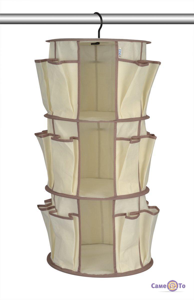 Такой мини-шкаф подвешивается на крючок и может вращаться по кругу, как карусель, что очень удобно при поиске необходимой вещи. Система хранения одежды и обуви Smart Carousel Organizer на 3 ряда решит ваши проблемы, и наведет порядок у самой «несобранной» хозяйки. Органайзер можно подвесить в шкафу или разместить на стойке. Удобство висящего шкафа в том, что все мелочи (и не совсем мелочи) находятся под рукой. Их не приходится долго искать, переворачивая все ящички и полочки. Собраться на работу или в гости не составит особого труда. Все дополнения к основному наряду можно разместить в удобных карманах.