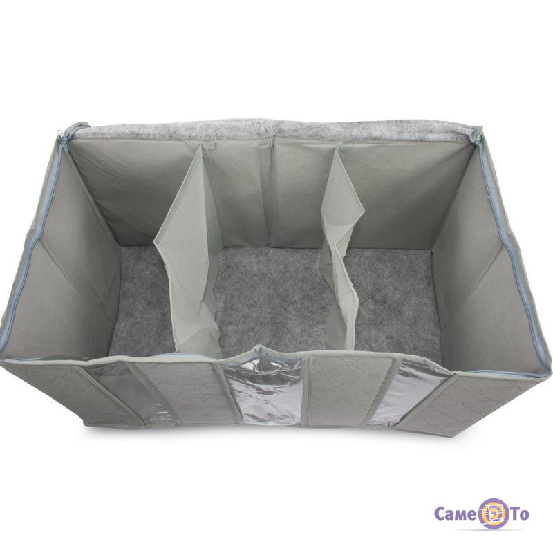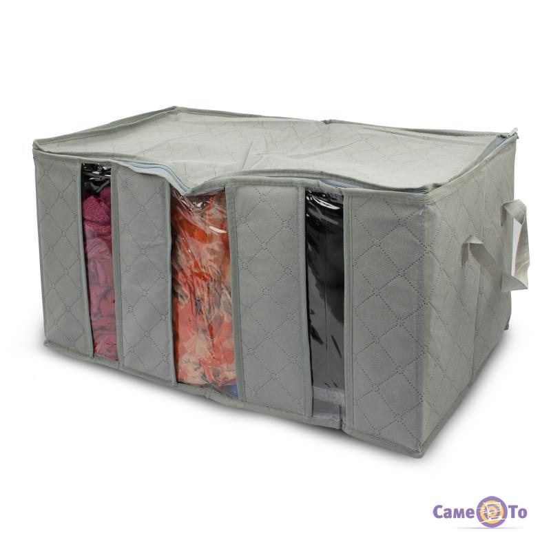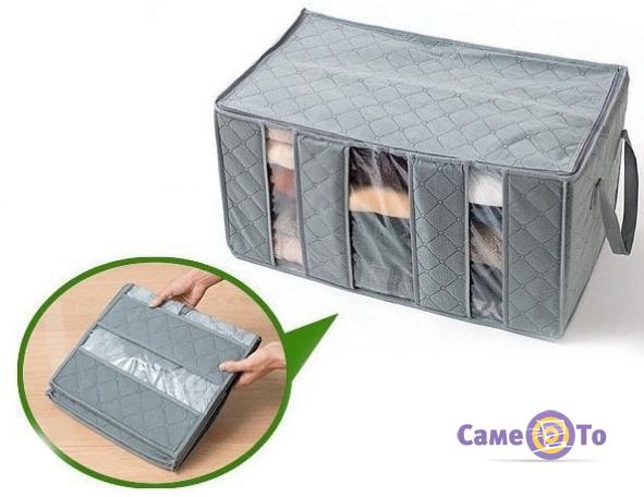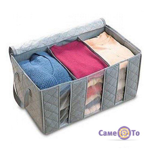 Органайзер для одягу на 3 відділення виконаний з бамбукового волокна. Він пропускає повітря, але перешкоджає проникненню пилу і комах. Кришка щільно застібається на застібку-блискавку. В такій шафці Ваші речі завжди будуть залишатися цілими і свіжими, і їх не потрібно буде періодично діставати для провітрювання.
