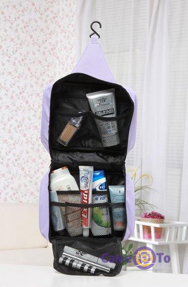 Специальный крючок позволяет удобно разместить дорожный органайзер где угодно, подвесив его в развернутом виде. Так Вы легко доберетесь до всего, что находится в косметичке.