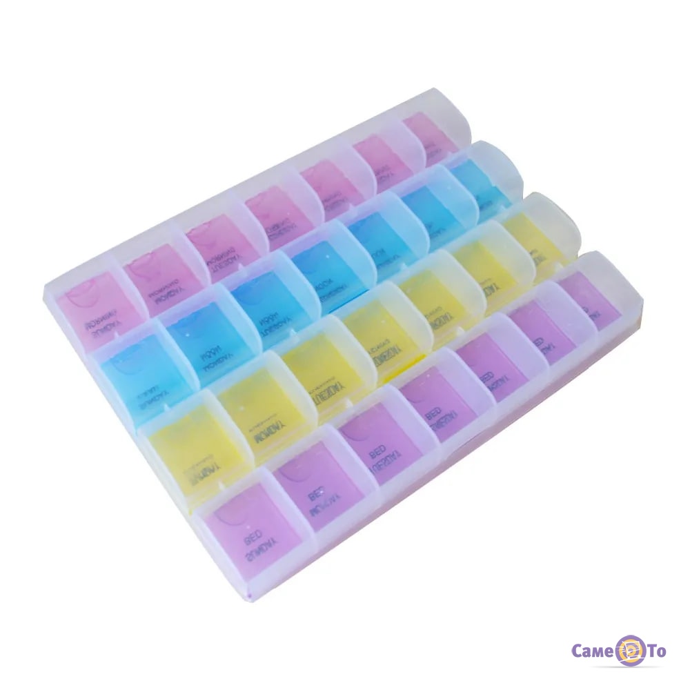 Щодня в органайзері має по 4 окремі осередки, призначені для ранкового, денного, вечірнього та нічного прийому таблеток. Прозорі кришки дозволяють легко бачити вміст кожного осередку, що робить процес організації та контролю за прийомом ліків більш простим та зручним. Компактні розміри роблять цей органайзер мобільним та зручним для використання вдома або у подорожах.