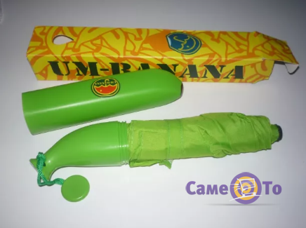 Ми пропонуємо Вам не просто яскраву парасольку, а модель з дуже креативним дизайном. У складеному вигляді парасолька є копією справжнього банана, нижня половинка якого є нічим іншим як ручкою, а верхня - чохлом на купол. «Банан» зроблений з міцного і легкого пластика, що захищає виріб від зовнішніх пошкоджень, а так само перешкоджає проникненню води, що стікає з мокрого виробу. Іншими словами, в такому чохлі Ви спокійно можете класти мокру парасольку в сумку, не боячись, що вона намочить всі інші приналежності, котрі лежать в сумці, а також, що купол парасольки можна випадково проткнути, наприклад, пилкою для нігтів або іншим гострим предметом, котрий лежить в сумочці.