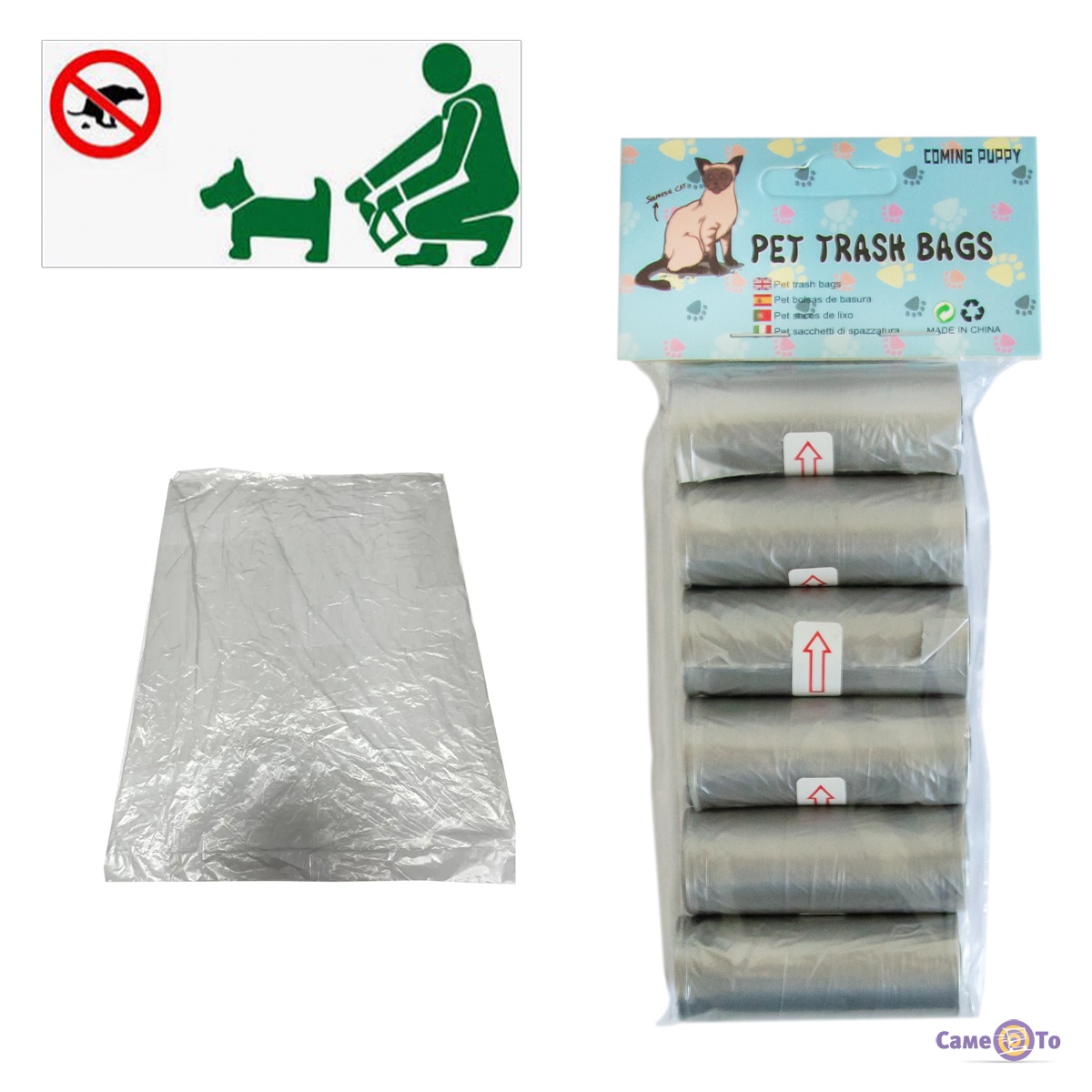 Пакети для прибирання за собаками "Pet Trash Bags Coming Puppy" виготовлені з високоякісного та міцного матеріалу, що забезпечує надійність та герметичність. Вони призначені для зручного збирання та утилізації собачих фекалій. Завдяки своїй біорозкладній природі ці пакети є екологічно безпечним вибором і не завдають шкоди навколишньому середовищу.