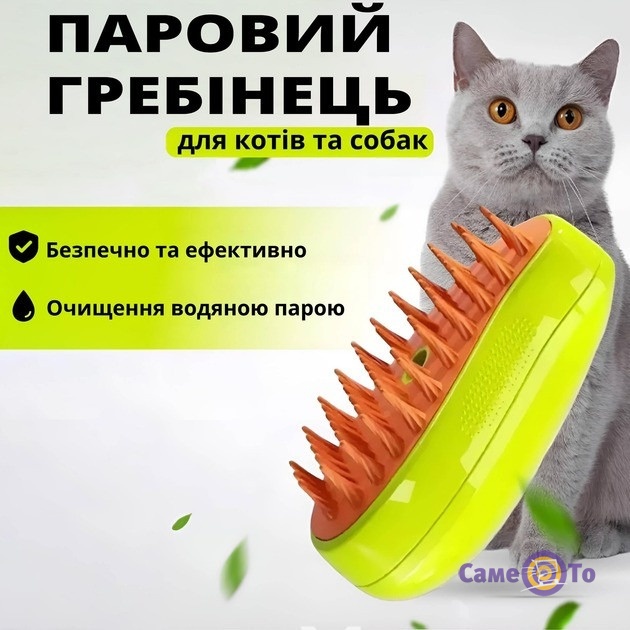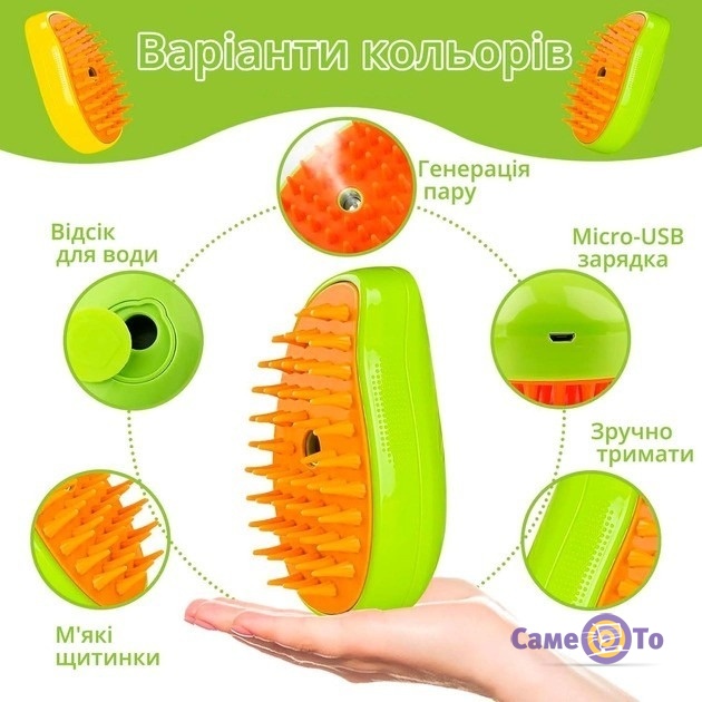 Парова щітка для вичісування вовни QC-06 PET BRUSH в зелено-жовтогарячому кольорі - ідеальне рішення для догляду за вовною ваших вихованців.