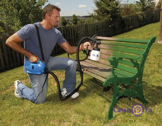 З ним Ви легко і швидко пофарбуєте будь-які поверхні, причому витрата фарби буде набагато нижче, ніж при фарбуванні валиком або пензликом. Тільки згадайте, як фарба капає з пензлика або стікає по руці при фарбуванні стелі. Як старанно, але марно, Ви намагаєтеся рівно покласти кожен шар, і як пальцями доводитися акуратно витягувати щетинки, що випали з інструменту.