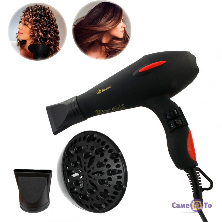 Фен с насадкой для кудрей Domotec MS-0219 относится как к профессиональной технике по уходу за волосами, так и к бытовой. Фен данной модели считается максимально наполненной разными насадками, а именно в наборе имеет диффузор для закрутки нежных локонов и 2 насадки концентратора для сушки прямых волос. Профессиональный фен для волос изготовлен с применением всех новейших технологий и не пересушивают волосы во время использования. Профессиональный фен для волос имеет 3 режима работы и 2 скорости для переключения. Имеет пластиковый черный матовый корпус, весит всего 450г. Подходит для частого использования, а также легко может складываться и применяться в любом путешествии. Фен с диффузором для кудрей имеет удобную петлю для подвешивания, и тем самым сохраняет место для хранения в ванной комнате. Работает с мощностью 3000W, и способен высушить волосы за считанные минуты. Диффузор фен способен автоматически отключаться в случае перегрева. Фен с насадкой для кудрей можно заказать с отправкой по всей Украине с проверкой прибора на отделении службы доставки.