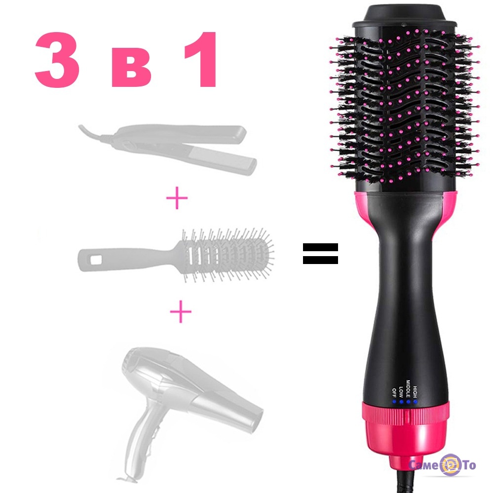 Фен щітка - це одноступінчатий фен і стайлер 3 в 1 який вже давно викликав фурор на ринку електроніки. Фен для укладки волосся здатен замінити звичайний фен і зробити красиву сушку і відразу укладання волосся за лічені хвилини. Фен щітка професійна допоможе розчесати, висушити і вирівняти волосся в порівнянні з сушінням і укладанням окремо. Ви можете зробити своє волосся легкими, залишаючи в них при цьому гарний блиск, запобігаючи ламкість та випадання. Фен щітка для сушіння волосся оснащений двома режимами нагріву, трьома варіантами швидкості і гнучкістю при укладанні. Фен гребінець оснащений іонною технологією: дизайн з іонною технологіэю для гладкого, м'якого, блискучого волосся. Професійний фен щітка для волосся допоможе зробити зачіску на будь-який смак: дрібні і великі кучері, обсяг і багато іншого.