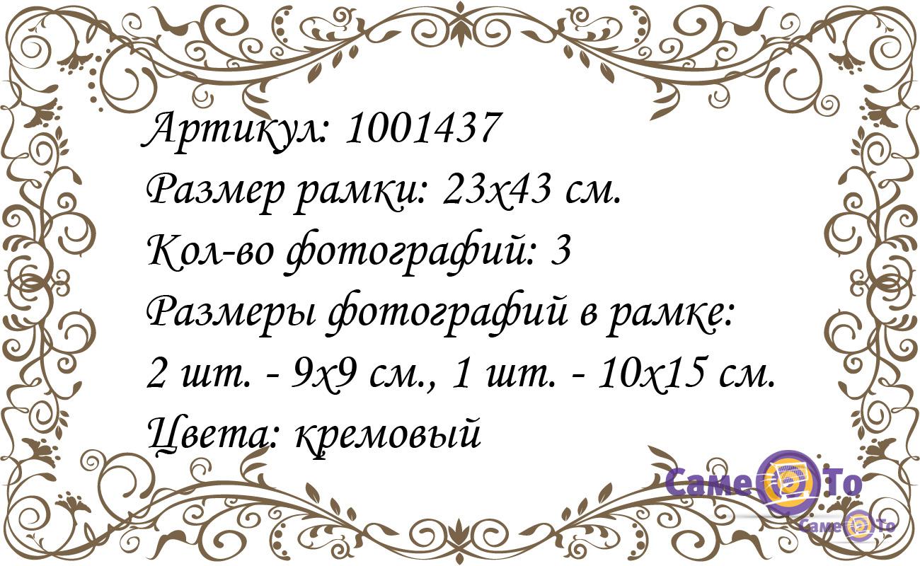 В нашем интернет-магазине Вы можете купить изящную и элегантную мультирамку на три фотографии. Она имеет необычайно нежный внешний вид, потому что состоит из трех секций – внутри расположен овал, а по бокам два одинаковых сердца. Соответственно, и снимки будут иметь точно такую же форму. Высота мультирамки составляет 23 см, а ширина ‒ 43 см. Размеры фото – 10 х 15 см (1 шт.), 9 х 9 см (2 шт.). Мультирамка произведена из прочного пластика высокого качества и имеет универсальный кремовый цвет, который органично впишется в интерьер любого помещения. Если Вы еще не знаете, какой подарок выбрать любимому, подруге или родителям на годовщину свадьбы, обязательно остановитесь на данной мультирамке, ведь она гарантированно понравится каждому!
