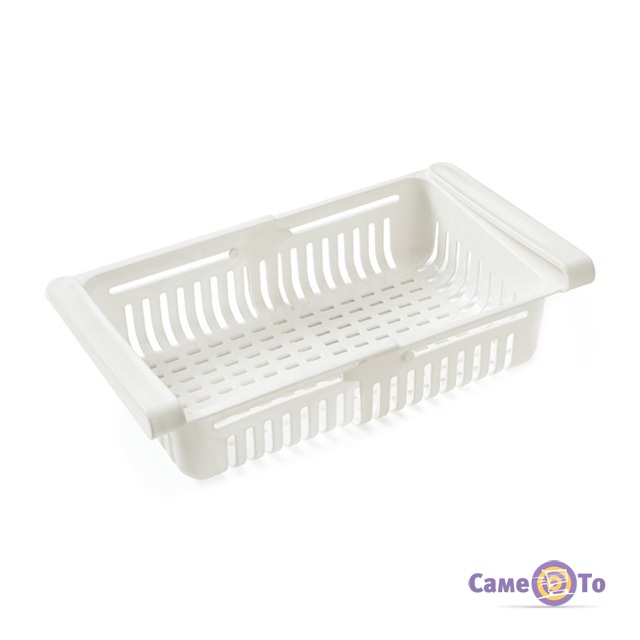 Підвісний органайзер для холодильника зроблений з харчового пластику, стійкого до впливу низьких температур. Це невеликий ящичок розміром 14.5x12x5 см., зі зручною ручкою і спеціальними «полозами», завдяки яким він легко і надійно кріпиться до полиці. Ящик встановлюється і знімається одним рухом. Не вбирає рідину, тому на ньому не залишиться плям від соку фруктів, шоколаду, молока або розбитих яєць. При забрудненні досить зняти і обполоснути ящик під водою. Можна використовувати миючий засіб.