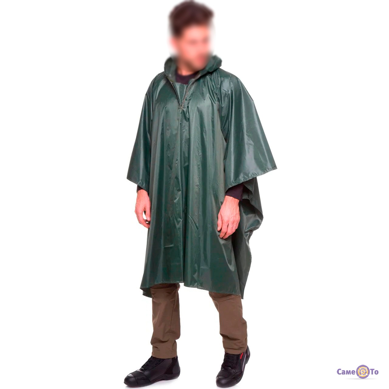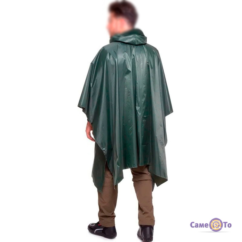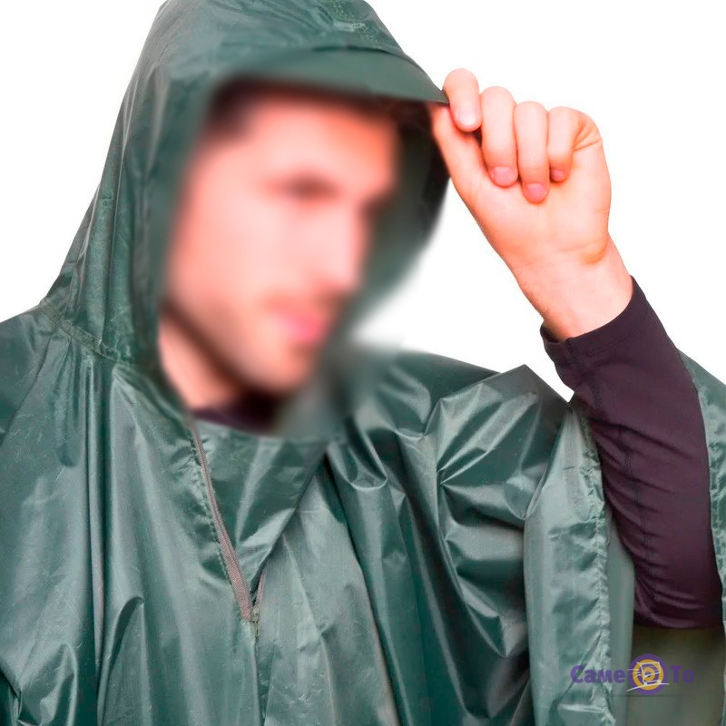 Такі плащі від дощу з капюшоном виготовлені в темно - зеленому кольорі. Матеріал виробу - нейлон, який здатний забезпечити дощовику максимальну практичність і довговічність. Він стійкий до будь-якої негоди, не рветься і не пропускає вітер. Завдяки чому, в холодну пору року, такий дощовик допоможе зберегти внутрішнє тепло тіла. Матеріал дощовика досить м'який, не важкий і не шелестить. При постійному використанні він не буде викликати ніякого дискомфорту. У комплекті з дощовиком туристичним йде зручний чохол, в який компактно можна скласти сам виріб і носити завжди з собою на випадок будь-якої негоди. Влітку такий плащ від дощу не буде зсередини збирати краплі вологи за рахунок правильної моделі і застібок, розташованим з боків. При ходьбі відбуватиметься необхідне пропускання повітря всередину самого виробу і вам не буде жарко.