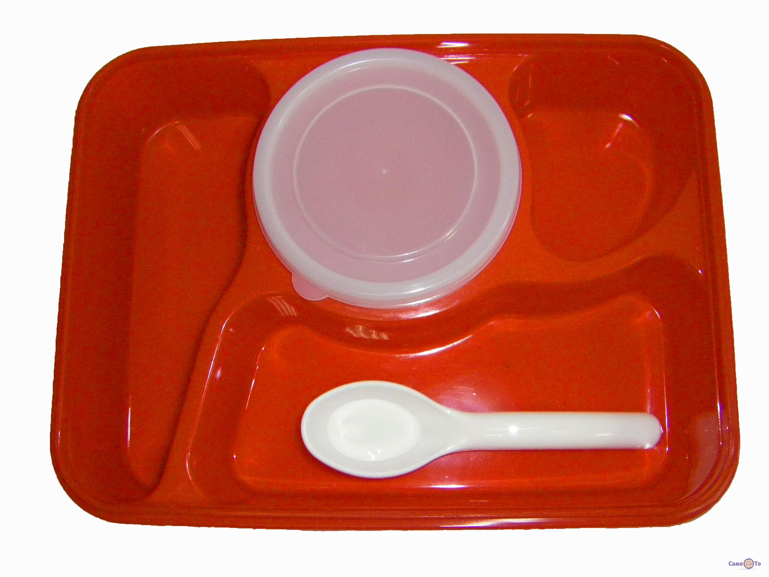 Судочок з відділенням для супу виготовлений з харчового пластику. Він підходить для розігріву в мікрохвильовій печі. Легко миється. Чи не іржавіє і не псується від постійного впливу вологи, жирів і кислот, що містяться в овочах і фруктах.