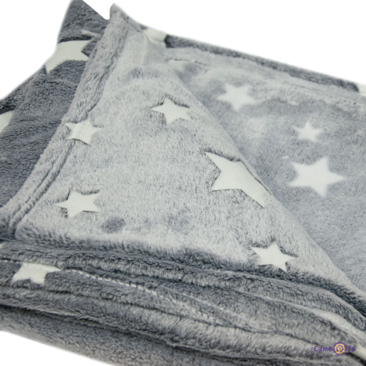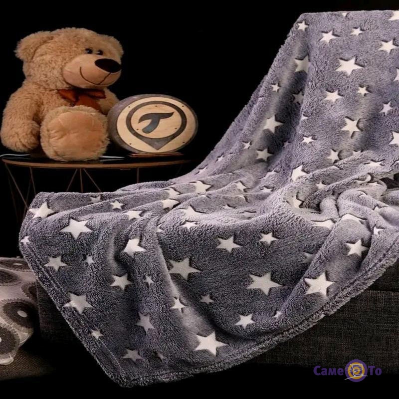 Плед покрывало плюшевое светящийся в темноте "Серое со звездами" 120х165см