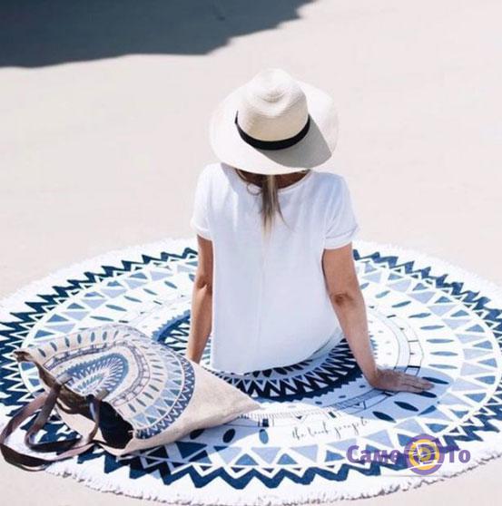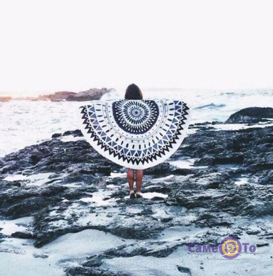 Пляжный коврик Мандала, синий с черным. Отличный вариант для пляжа и отдыха на природе. Стильный и красочный дизайн. Коврик можно также использовать вместо парео.