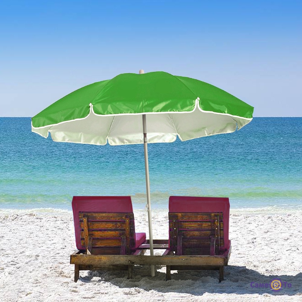 Вона вкриє вас і ваших рідних від сонячних променів і від помірного вітру. З ним ваш відпочинок на морі пройде комфортно. Особливо, якщо ви їдете відпочивати з дітьми - без нього не обійтися. Сам купол виготовлений з міцного, але в той же час легкого матеріалу - нейлону, який кріпиться до сталевої стійки. Тканина не потребує якогось спеціального догляду, міцна, не вигоряє на сонці і швидко сохне. Діаметр купола 1.75 м. Парасолька від сонця великий, підійде для відпочинку компанії з кількох людей. У парасольці від сонця 8 спиць, купол э надійним та стійким. Спиці міцні, не зламатися і не гнуться від поривів вітру, парасолька не вивертається навиворіт. Так само в парасольку вбудований механізм, який дозволяє змінювати кут нахилу, при цьому створюючи постійну тінь. Це одна з найважливіших функцій парасольки. Так ви зможете весь день провести на відпочинку, не переживаючи за своє самопочуття і здоров'я. Завдяки спеціальному захисту від ультрафіолету з оберненого боку куполу, ви можете не боятися небезпечного опромінення і сонячних опіків, особливо в годину пік. Пляжна парасолька висотою 2 метри, але на ньому є спеціальний важіль і при його натисканні можна регулювати висоту. Окінців’я у пляжної парасольки гостре, його можна без особливих зусиль встромити в землю або пісок. Дуже легко і швидко складатися і розкладається. Все продумано до дрібниць. Вона досить легка, компактна і транспортабельна. Ви можете хоч кожен день їздити з нею на пляж на громадському транспорті або носити в руках - вона не завдасть вам дискомфорту. Модель випускається в різних забарвленнях, можна підібрати на будь-який смак.