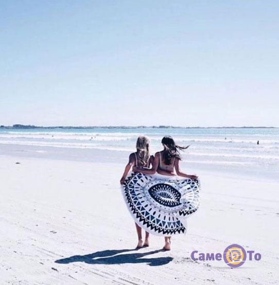 Пляжный коврик Мандала, синий с черным. Отличный вариант для пляжа и отдыха на природе. Стильный и красочный дизайн. Коврик можно также использовать вместо парео.