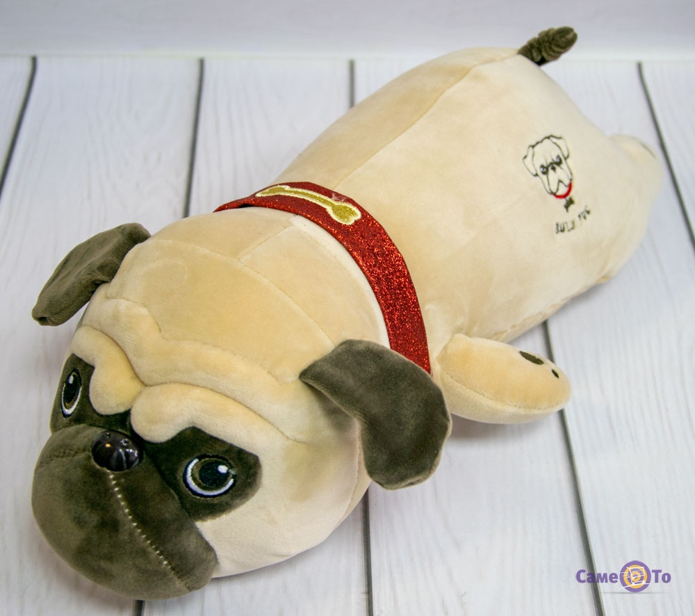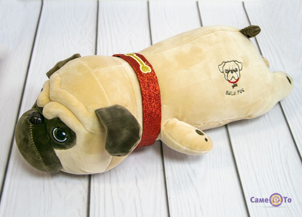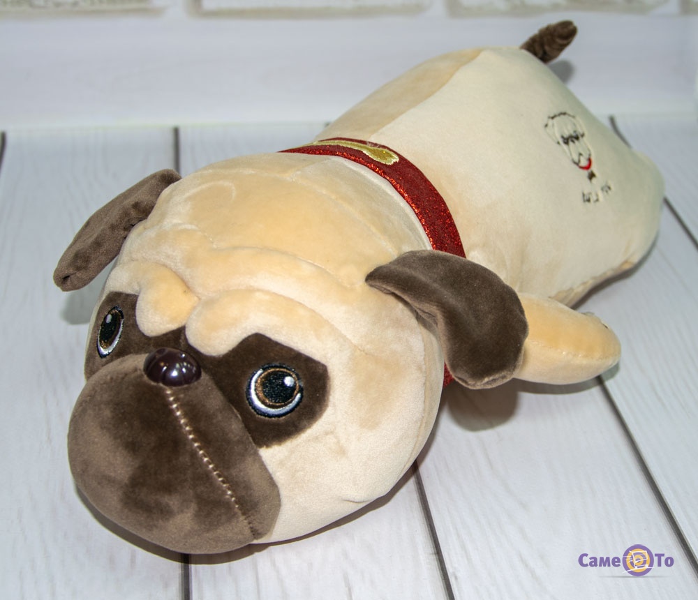 Дитина зможе з нею грати, спати, проводити весь свій вільний час. М'яка іграшка собака має довгасту форму і зовні нагадує маленького мопса. Плюшева іграшка може бути як декоративна, так і просто улюблена іграшка дитини, з якою він спокійно буде засипати щоночі. Виготовлена подушка собака з гіпоалергенних матеріалів, не викликає роздратування або алергію. Якщо плюшева собака у вас раптом забрудниться, ви завжди можете її випрати і просушити. Від цього вона не втратить зовнішній вигляд і не зіпсується. Дитина від такого подарунка залишиться в захваті. Подаруйте радість дитині, якай дуже любить собак. У такій плюшевій собаці у вас ніколи не заведуться кліщі і інші комахи, адже вона має не натуральний наповнювач - сіліконізованное волокно. Такий матеріал застосовується в якісних м'яких іграшках і допускається для гри дітям вже від 3 місяців. Має м'яка іграшка собака такі розміри: 40х12х21 см. Купити мопса іграшку можна в нашому інтернет-магазині за доступною ціною вже сьогодні. Ми оформимо доставку в будь-яке зручне для вас місто по всій Україні. Така іграшка ідеально підходить для дітей, і подарувавши таку красиву собаку дорослому, він теж оцінить її по достоїнству.