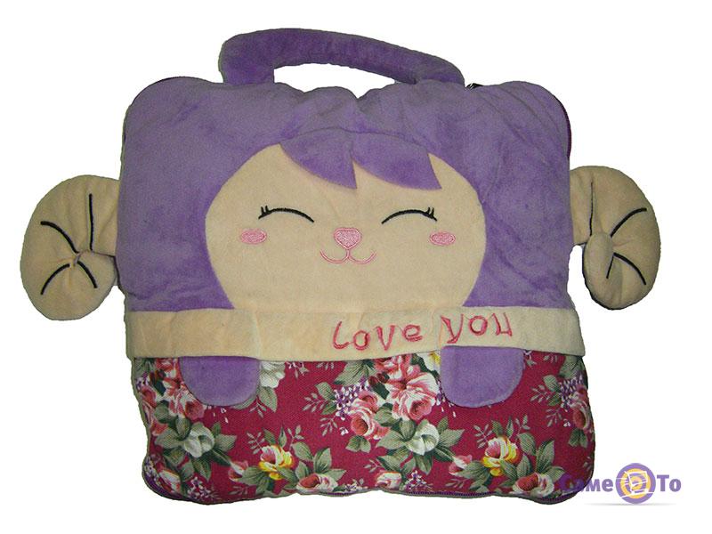 Плед-подушка для дітей 3 в 1 – річ корисна як в домашньому побуті, так і в дорозі. Він великий, м'який, теплий і дуже приємний на дотик. Розмір 110х180 см. дозволяє повністю закутати в нього дитину з ніг до голови.