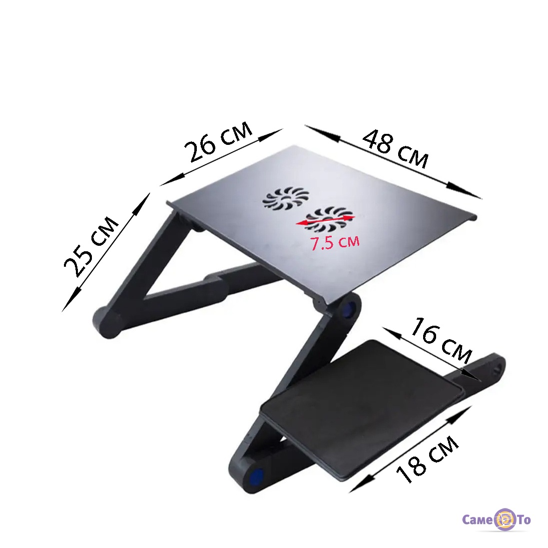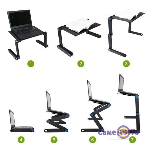 Модель изготовлена из алюминиевого сплава и имеет продуманный дизайн с двумя вентиляторами. А это значит, перед нами качественная охлаждающая подставка для ноутбука. Кроме того, далеко не все подставки для ноутбуков имеют еще и место для мышки, здесь же оно есть. И при этом стоит такой складной столик для ноутбука недорого и доступен к покупке в нашем интернет-магазине «СамеТо» прямо сейчас!