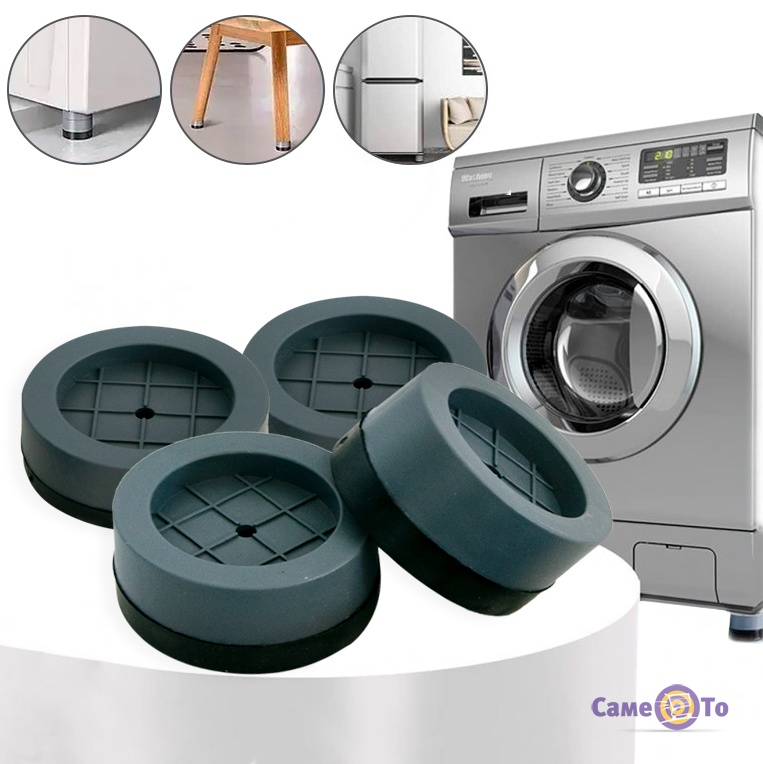 Создать оптимально комфортные условия для работы бытовых приборов вам помогут специальные антивибрационные подставки для стиральной машины. Данное приспособление, несмотря на свои компактные размеры, отлично гасит шум и вибрацию, которые нередко возникают в процессе работы бытовой техники. В упаковку входит 4 насадки серого цвета, выполненных из высокопрочного пластика. Дополнительно антивибрационные подставки под стиральную машину обеспечивают ее более прочную фиксацию на полу. Это приспособление не только избавит вас от неприятного звука работающей техники, но и защитит напольное покрытие под ней от царапин и других повреждений.