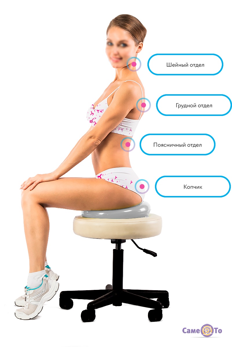 Баланс подушка виконана із ПВХ матеріалу, має компактні розміри та невелику масу, тому вдома вона не займе багато місця. Також вона не вимагає будь-якого догляду за нею. Для регулювання параметрів пристрій має спеціальний клапан.