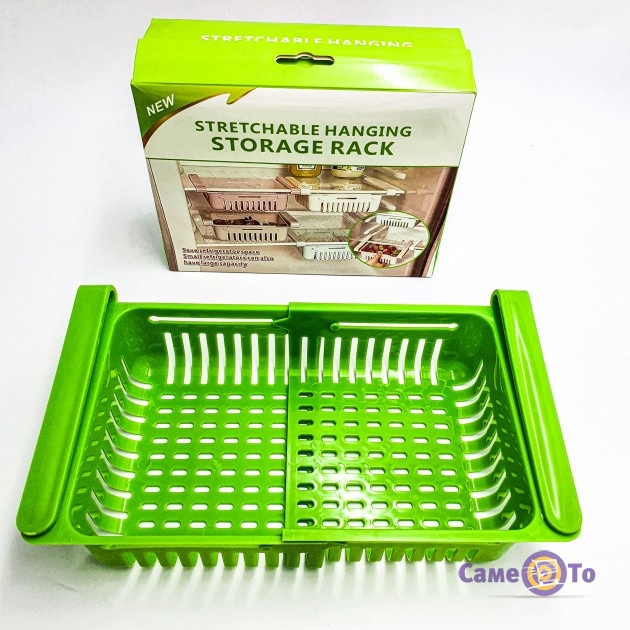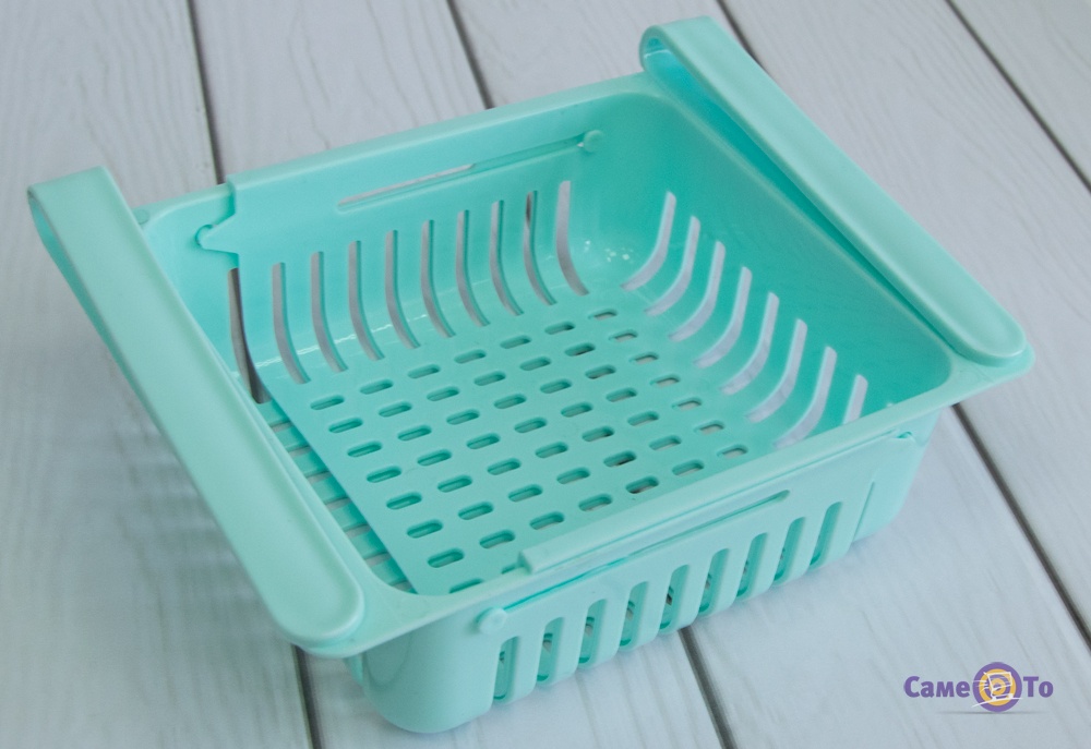 Подвесной органайзер для холодильника сделан из пищевого пластика, устойчивого к воздействию низких температур. Это небольшой ящичек размером 14.5x12x5 см., с удобной ручкой и специальными «полозьями», благодаря которым он легко и надёжно крепится к полке. Ящик устанавливается и снимается одним движением. Не впитывает жидкость, поэтому на нём не останется пятен от сока фруктов, шоколада, молока или разбившегося яйца. При загрязнении достаточно снять и ополоснуть ящик под водой. Можно использовать моющее средство.