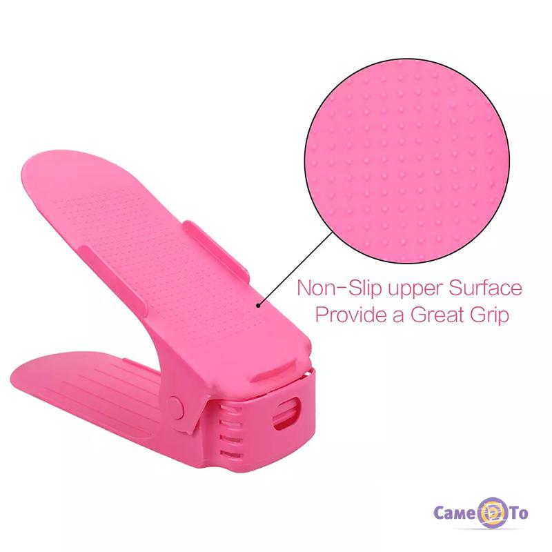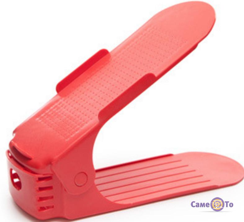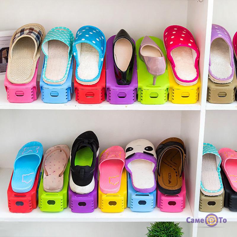 Стійка для взуття дозволяє не тільки зберегти порядок, але і використовувати корисний простір взуттєвої полиці в два рази раціональніше. Адже тепер все взуття буде розташовуватися в «два поверхи».