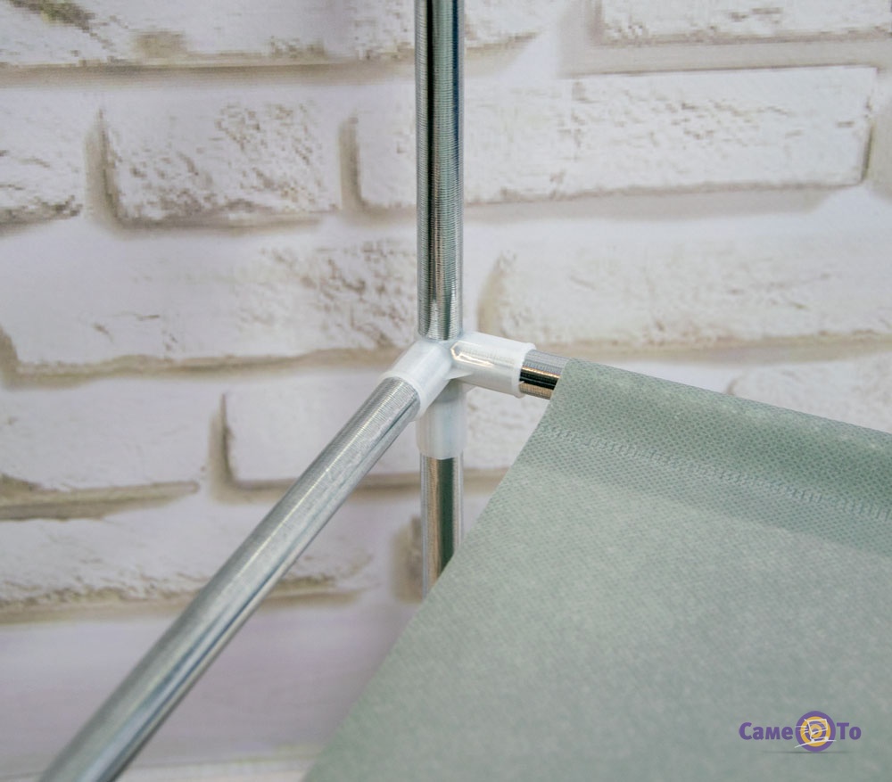 Каркас зроблений з металу, а самі полички з міцного текстилю. Така особливість робить поличку для взуття досить стійкою і міцною. Якщо заповнити всі яруси взуттям, стелаж НЕ перекинеться і не зламається. Взуттєва полка має відкриту конструкцію. Взуття не доведеться довго шукати, і вона не буде зберігати в собі неприємні запахи, якби вона перебувала в закритому просторі. Деякі вирішують купити етажерку для взуття з метою використовувати її не під взуття, а під дитячі іграшки, під зберігання непотрібних речей на балконі або в гаражі. Якщо поставити кілька таких полиць і скласти на них непотрібні речі, простір в кімнаті буде виглядати акуратним і доглянутим. При цьому стелаж досить місткий і легко миється. Має гарний дизайн і підходить під будь-який інтер'єр.