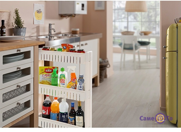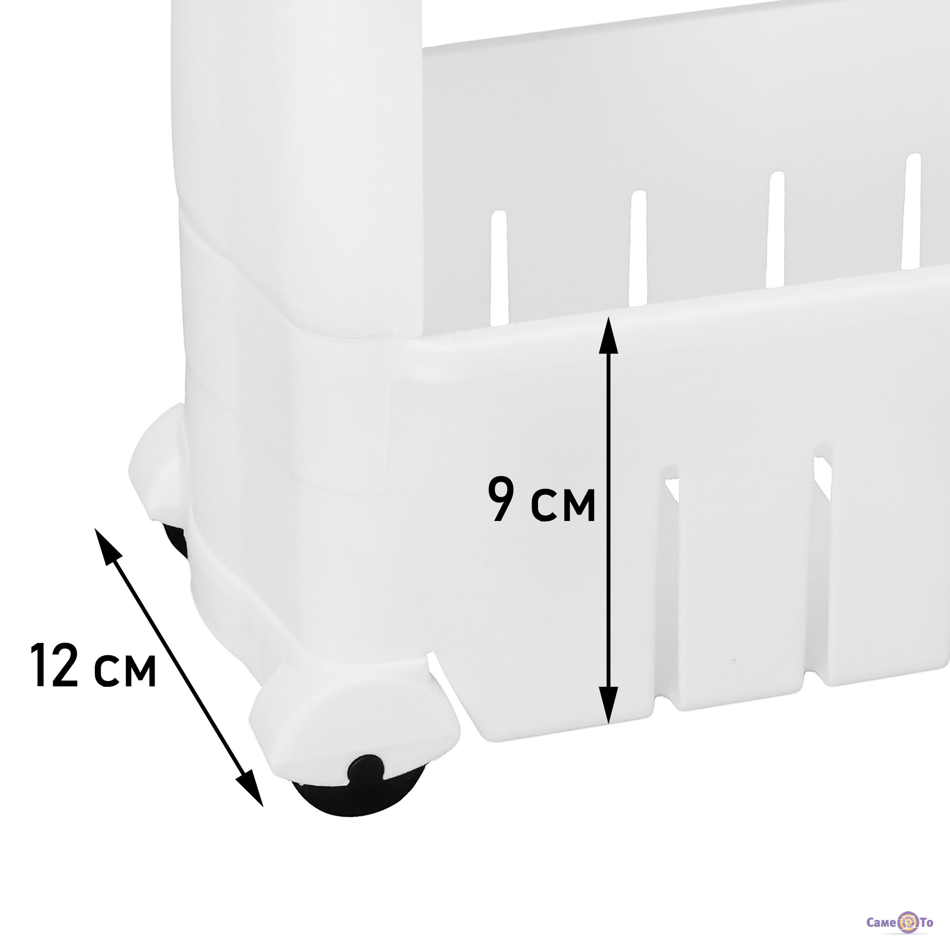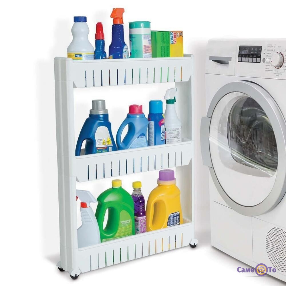 Зручне розміщення косметики, побутової хімії і банного приладдя - все це легко поміститься в пересувну поличку. Мобільність і зручність в одному предметі інтер'єру.