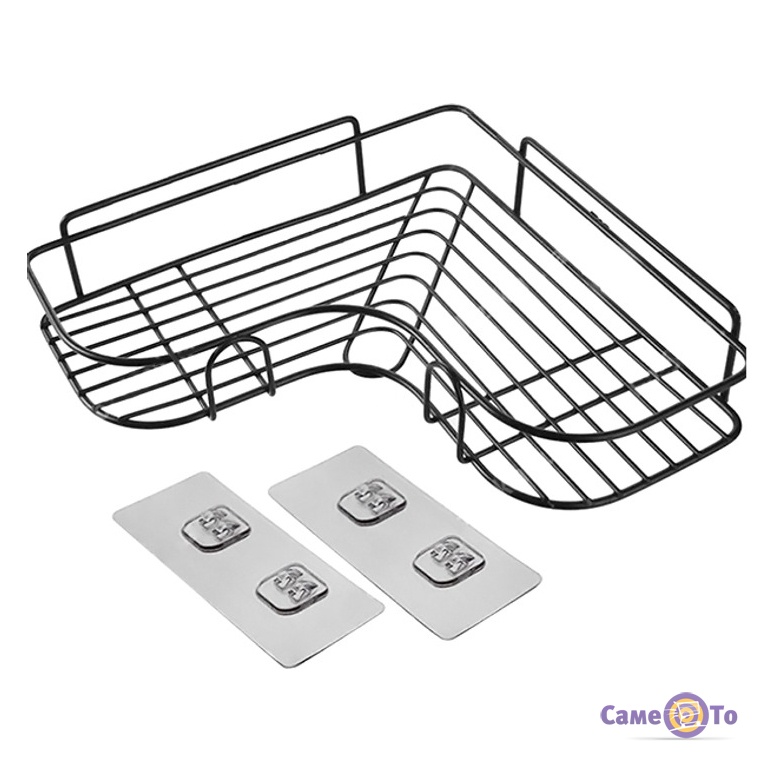Кутова полиця у ванній кімнаті на липучках чорного кольору 26х26х5,5 см - ідеальне рішення для організації простору у ванній кімнаті.