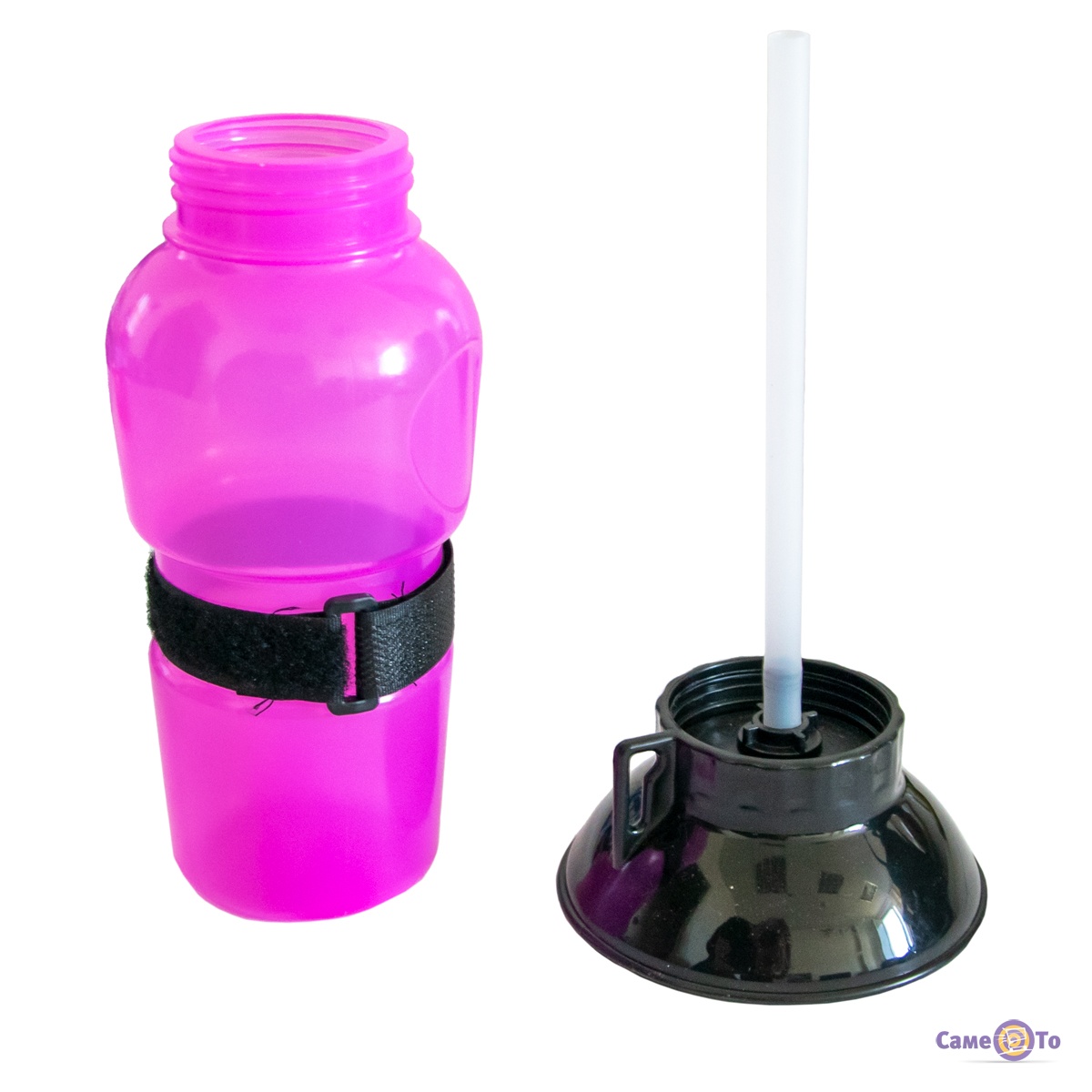 Така поїлка для собак в дорогу має продуманий дизайн. Вона складається з двох відсіків. Нижній відсік - це пляшка з м'якими стінками об'ємом 0,5 л. Верхній відсік виконаний у формі чаші або воронки, він і є аналогом миски, з якої ваш пес зможе попити води. Для того щоб вода надійшла в чашу, необхідно натиснути на нижню частину поїлки.