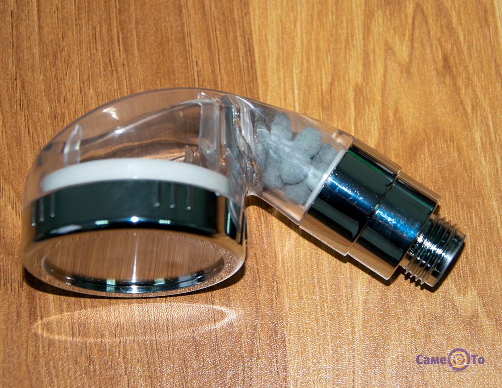 Даний комплект складається з ручної насадки для душа, з клапана, який перемикає потоки води, шланга і утримувача насадки для душа. Дана душова система дозволяє відмінно вимити волосся або помити домашніх тварин. Душовий комплект виготовлений з нержавіючого металу, а значить, довго прослужить у вживанні. Не потрібно використовувати гвинти або свердлити стіну, щоб встановити цю систему. Єдиним обмеженням є установка комплекту на дзеркало або скляну поверхню.